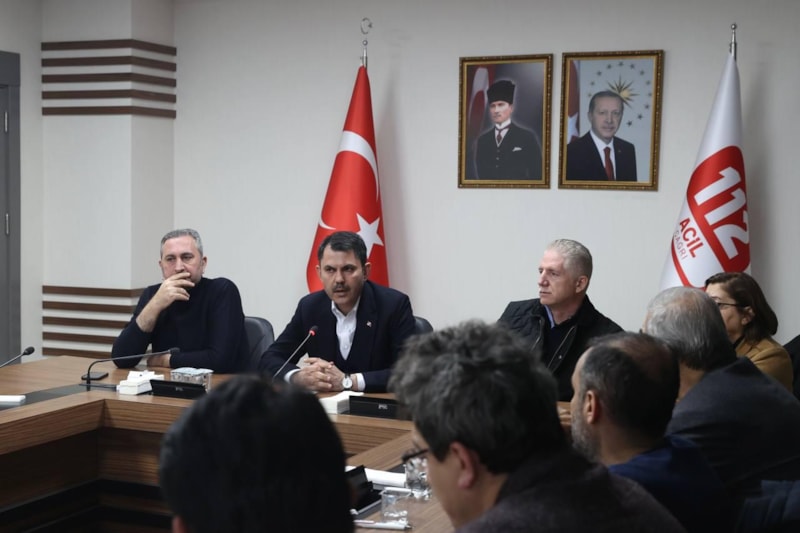 Bakan Kurum, koordinasyon toplantılarında, depremden etkilenen vatandaşların yaşamlarını bir an önce normale dönmesi için şehrin ihtiyaçlarının belirlenmesi ve giderilmesi noktasında alınan tedbirler hakkında bilgi alıyor.