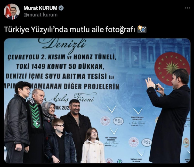 Kurum, paylaşımında, "Türkiye Yüzyılı’nda mutlu aile fotoğrafı" ifadesini ekledi.