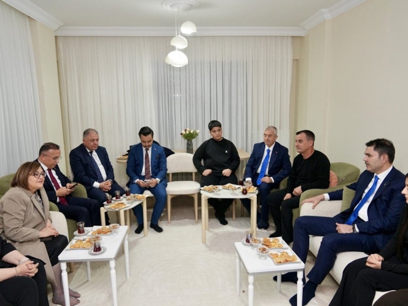 Nurdağı ilçesinde depremden sonra inşa edilen afet konutlarında yaşayan 3 çocuklu Çınar ailesinin evine konuk olan Murat Kurum, başlatılan inşa seferberliği sonrası gelinen noktaya dikkat çekerek "Çok şükür ki bugün bu evlerde huzurla oturuyorsunuz" dedi.