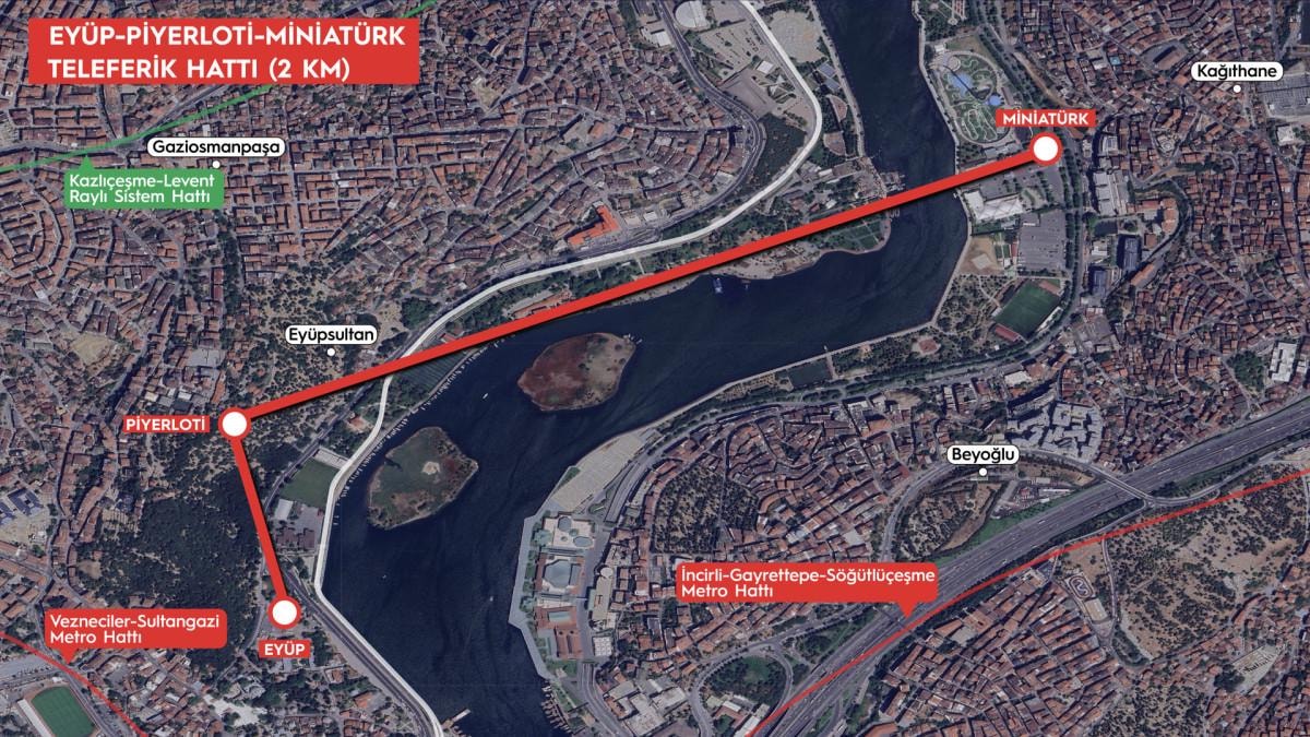 - 2 km’lik Eyüpsultan-Pierre Loti-Miniatürk teleferik hattı