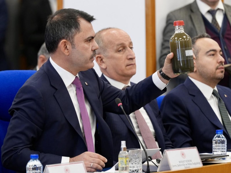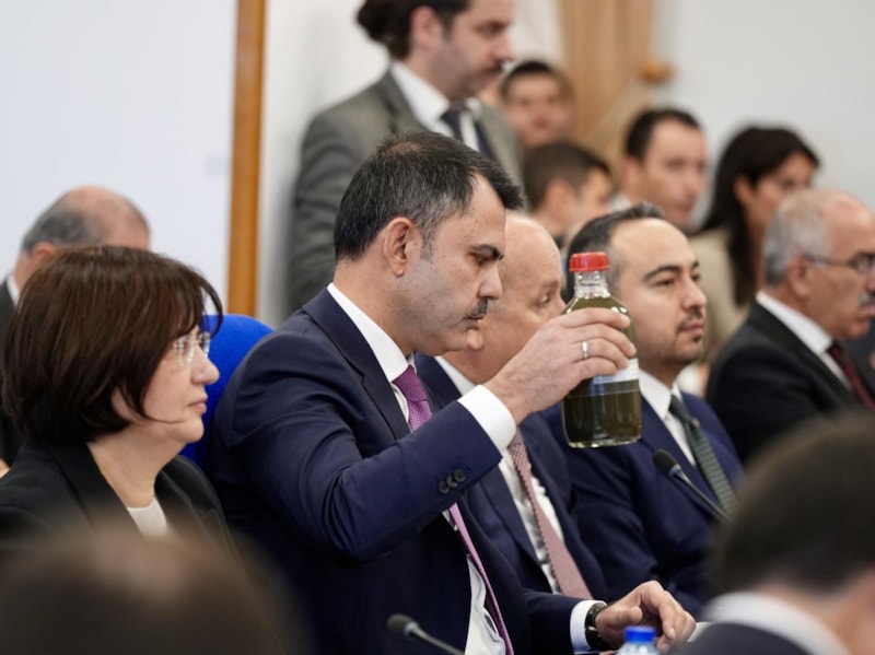 Murat Kurum, İzmir Körfezi’nin kirli deniz suyunu TBMM’ye getirerek CHP’lilere seslendi. Kurum konuşmasında, "Bu kokunun olduğu bir denizin kıyısında İzmirliler rahatça hayat sürebilir mi?" diye sordu.