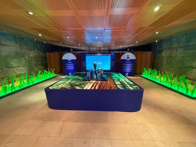 Sergide sanatçı Gökhan Doğan'ın deniz çayırları temalı dijital enstalasyonu katılımcılara sunuldu.