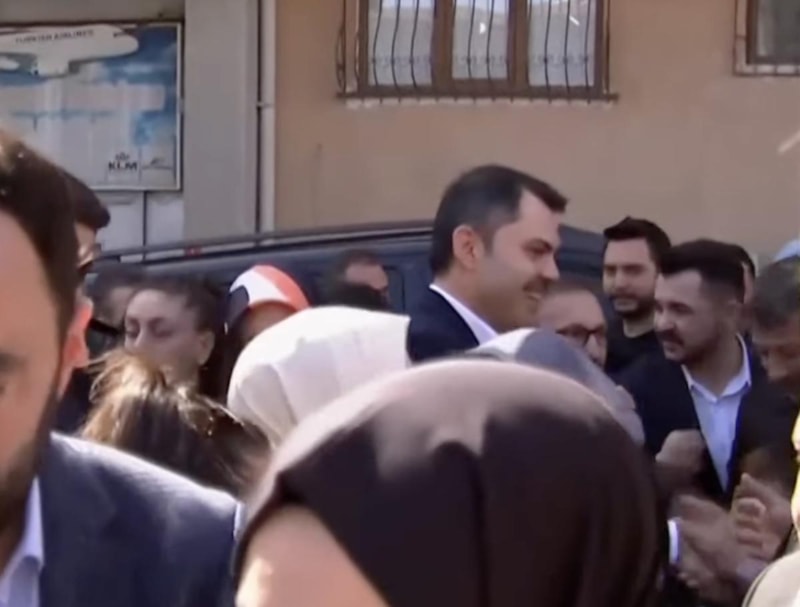 Okula oy kullanmaya gelen Murat Kurum'a ilgi oldukça yoğundu.