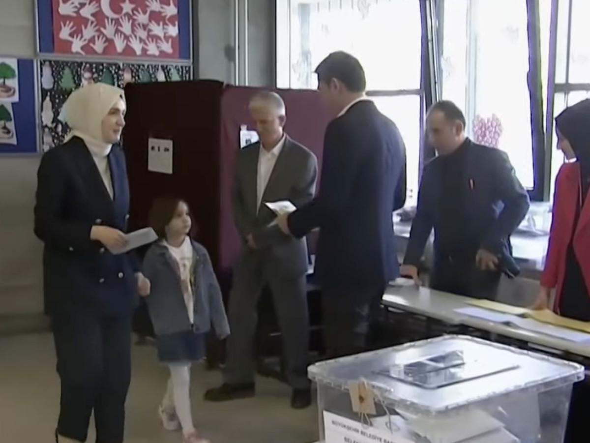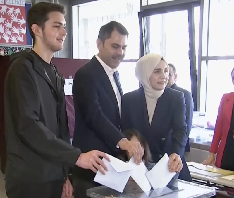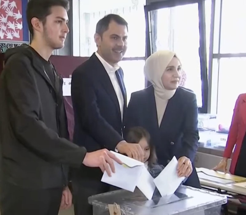 İstanbul Kağıthane İmece İlkokulu'nda oyunu kullanan Murat Kurum'a eşi Şengül Kurum ve oğlu eşlik etti.
