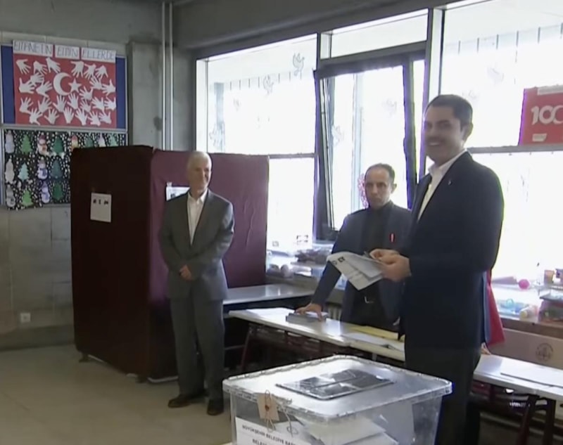 Cumhur İttifakı'nın İstanbul Büyükşehir Belediye Başkan adayı Murat Kurum, oyunu kullanmak üzere İmece İlkokulu'na geldi.