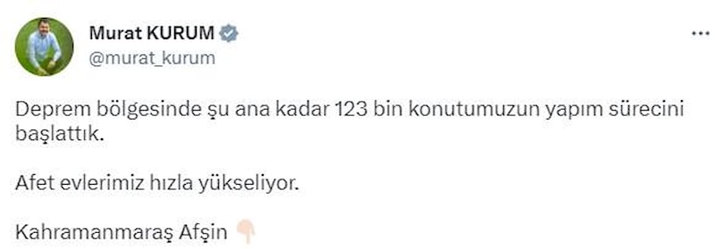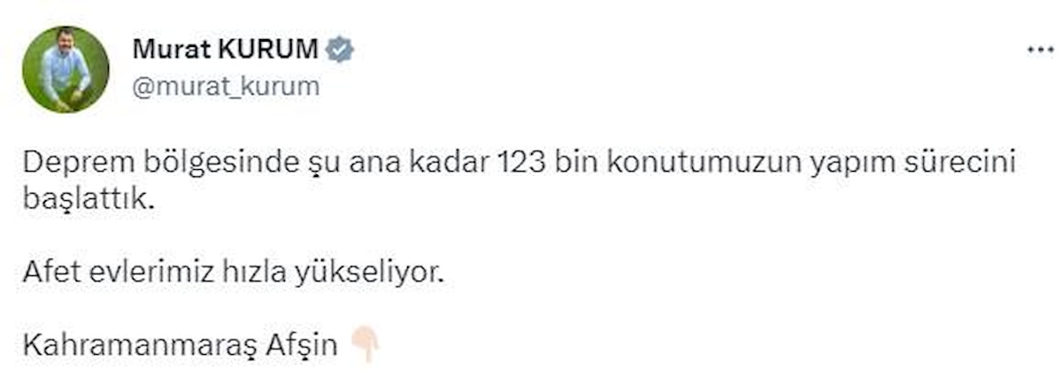 Çalışmalara ilişkin sosyal medya hesabından videolu paylaşım yapan Çevre, Şehircilik ve İklim Değişikliği Bakanı Murat Kurum, şu ifadeleri kullandı: