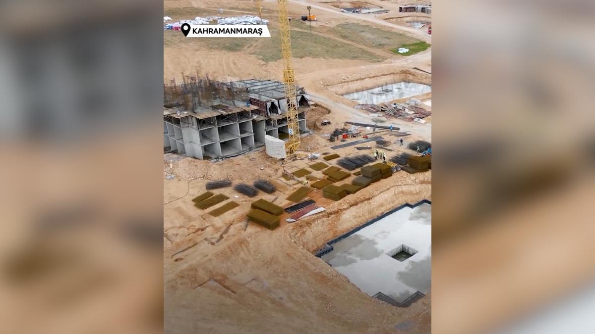 Asrın felakeinin ardından depremin merkez üssü Kahramanmaraş yeniden ayağa kaldırılıyor. Şu anda Afşin ilçesindeyiz. TOKİ eli ile burada 2 bin 179 konutun inşası son sürat devam ediyor.