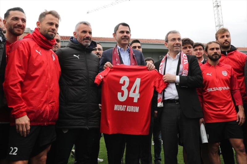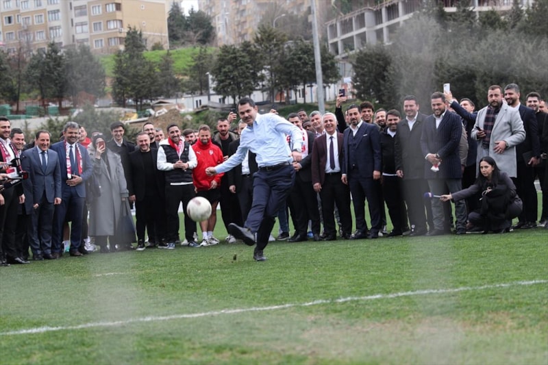 Cumhur İttifakı'nın İBB Başkan Adayı Murat Kurum, Pendikspor tesisi ziyareti sırasında kaleye geçen Pendikspor kalecisi Murat Akşit’e penaltı atışı kullandı. Kurum daha sonra basın mensuplarıyla futbol oynadı.