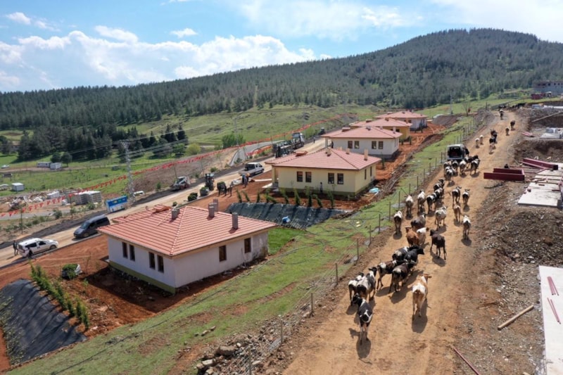 Köy tipi kalıcı afet konutları, TOKİ standartlarında zemin etütleri yapılarak kaya zemin üzerine, radye temel, betonarme olarak 44 günde tamamlandı.