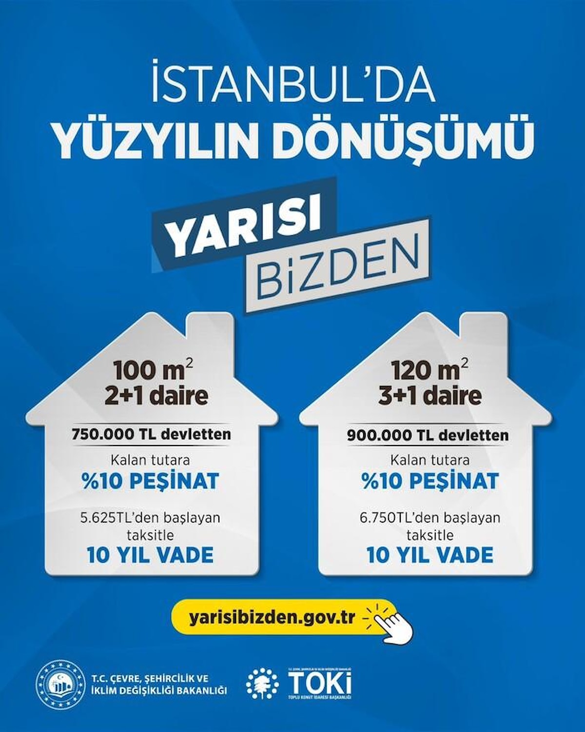Müjdeyi, Cumhurbaşkanı Recep Tayyip Erdoğan verdi. "Yarısı Bizden" kampanyasıyla İstanbul'da riskli yapılar dönüşüme girmiş olacak.