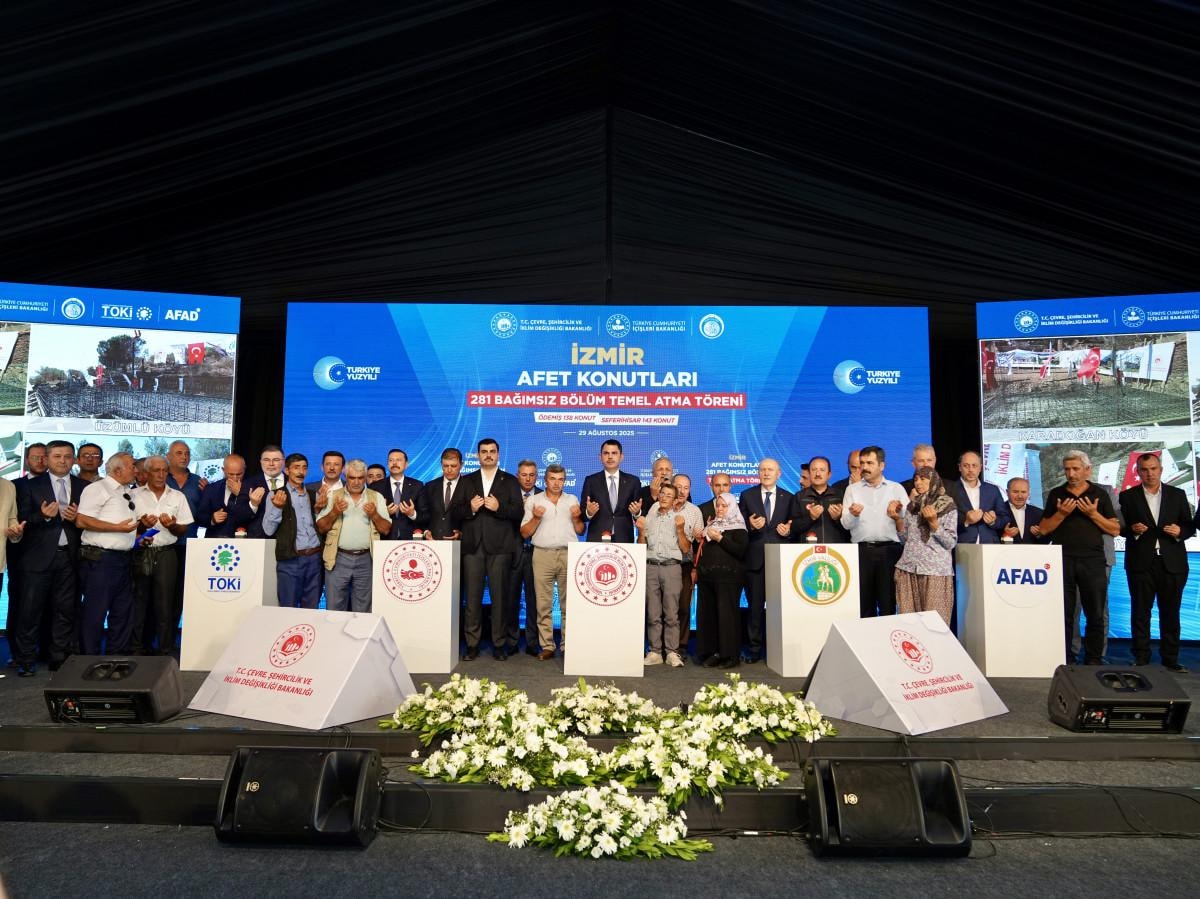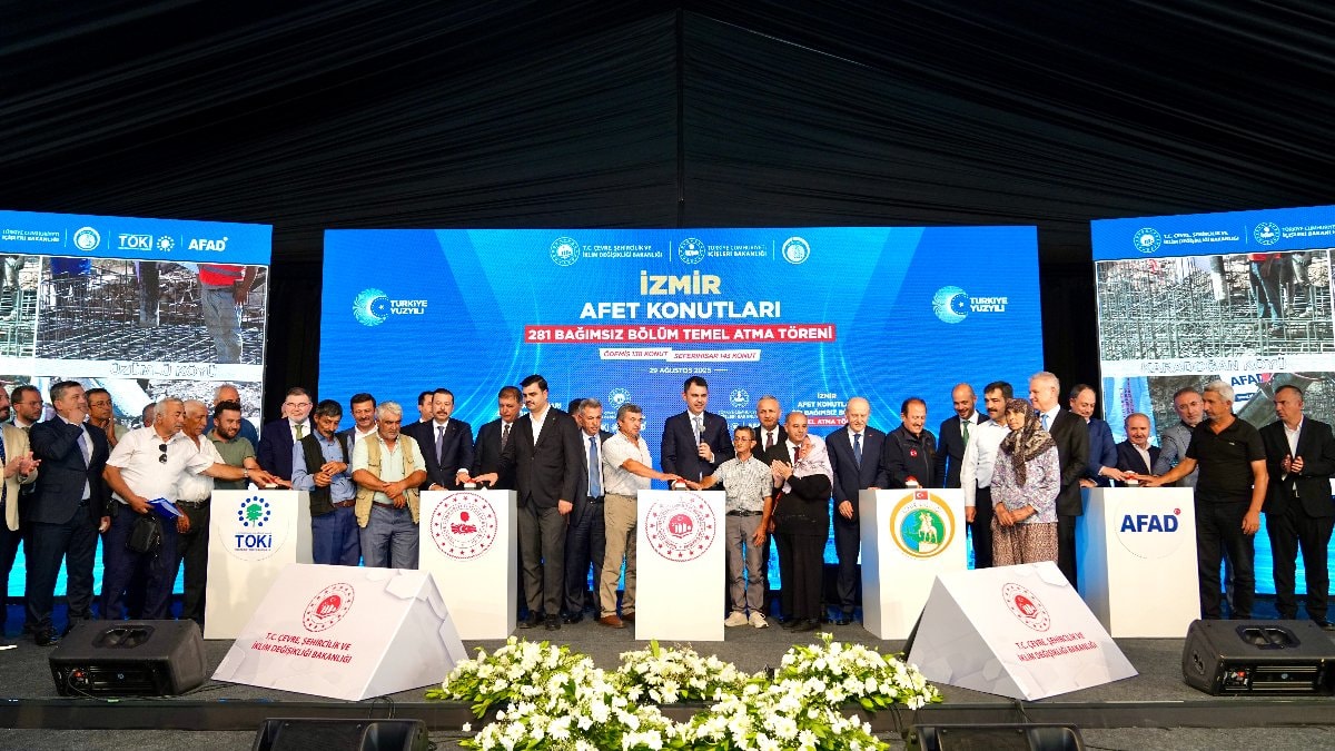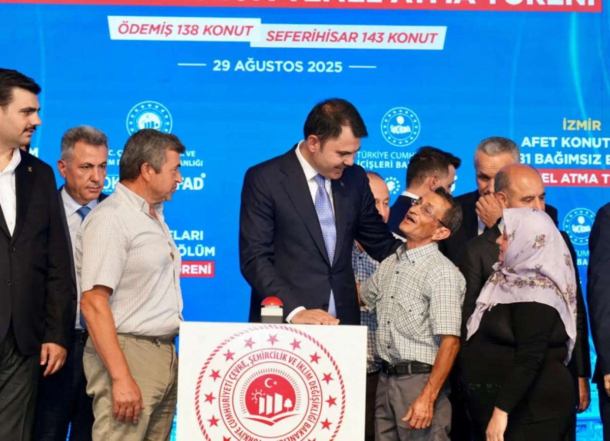 - Çevre ve Şehircilik Bakanı Murat Kurum, Ödemiş'te yangında evini kaybeden Cavit Özer'e verdiği sözü tutarak afet konutlarının temelini attı.