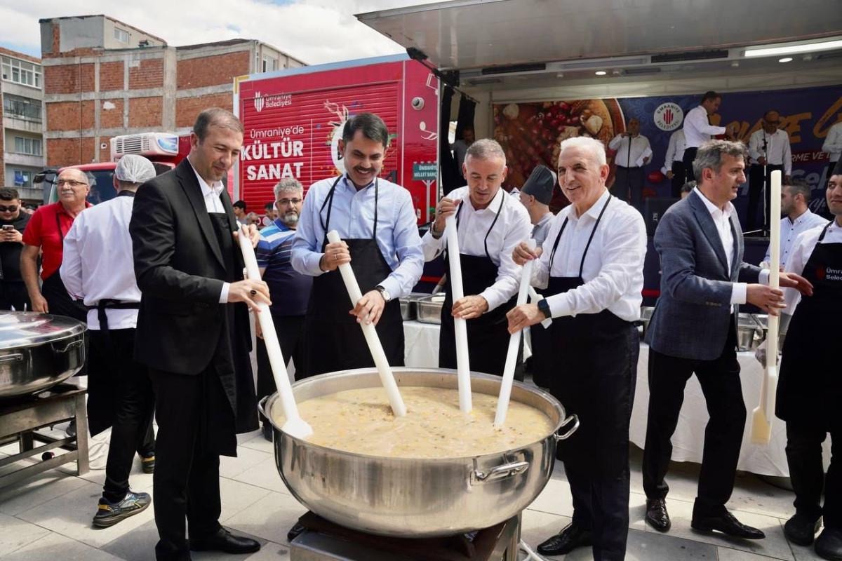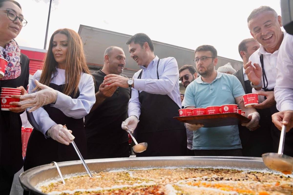 Murat Kurum, konuşmasının ardından alana kurulan ocaklarda pişirilen aşureleri vatandaşlara ikram etti.
