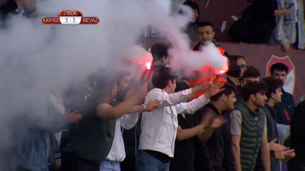 Bu sırada tribünler coşkulu anlar yaşayarak meşaleler yakmaya başladı. Beraberlik golü ile birlikte karşılaşma sona erdi.