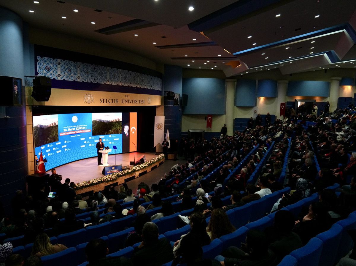 Konuşmaların ardından Selçuk Üniversitesi Rektörü Prof. Dr. Hüseyin Yılmaz, Bakan Kurum’a cübbe giydirerek fahri doktora belgesini takdim etti.