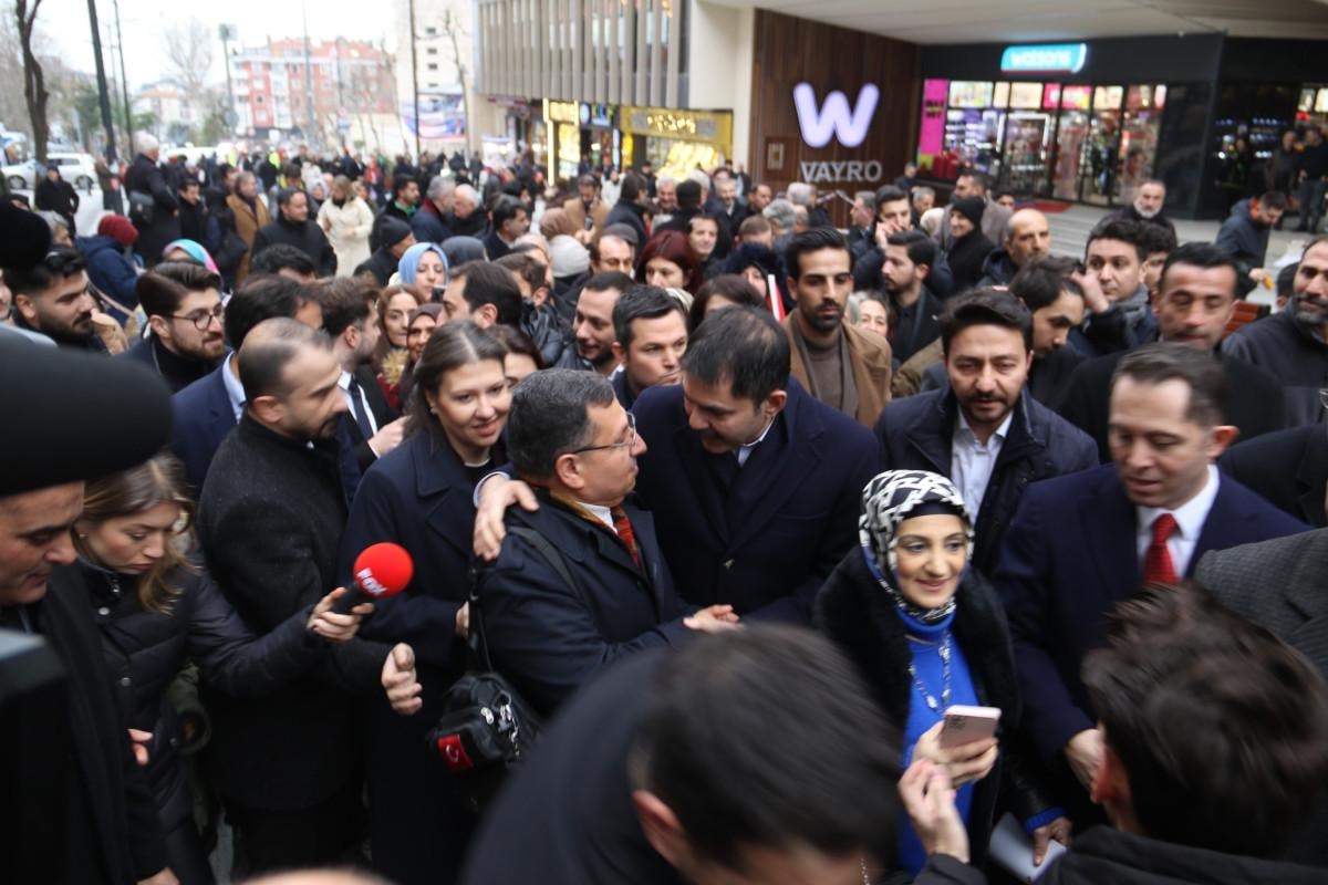 Hemen ardından Merkez Mahallesi Marmara Caddesi'nde esnafı ziyaret eden Murat Kurum, vatandaşlarla fotoğraf çektirdi.