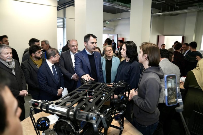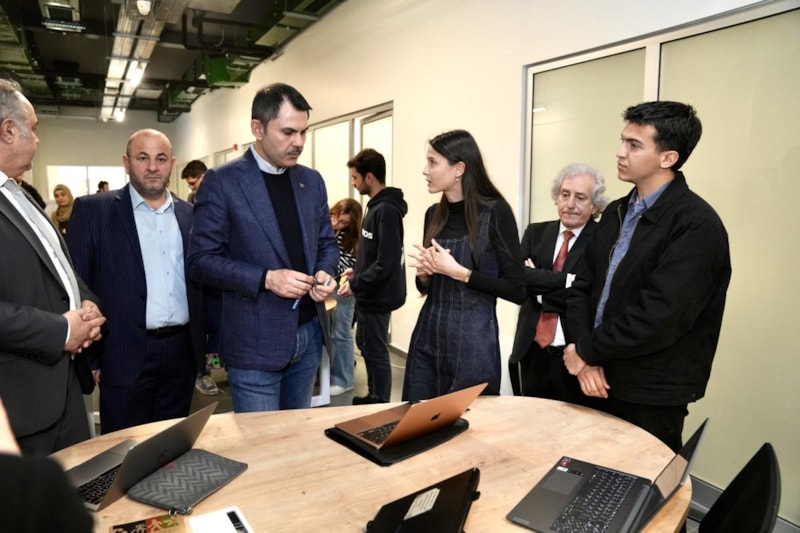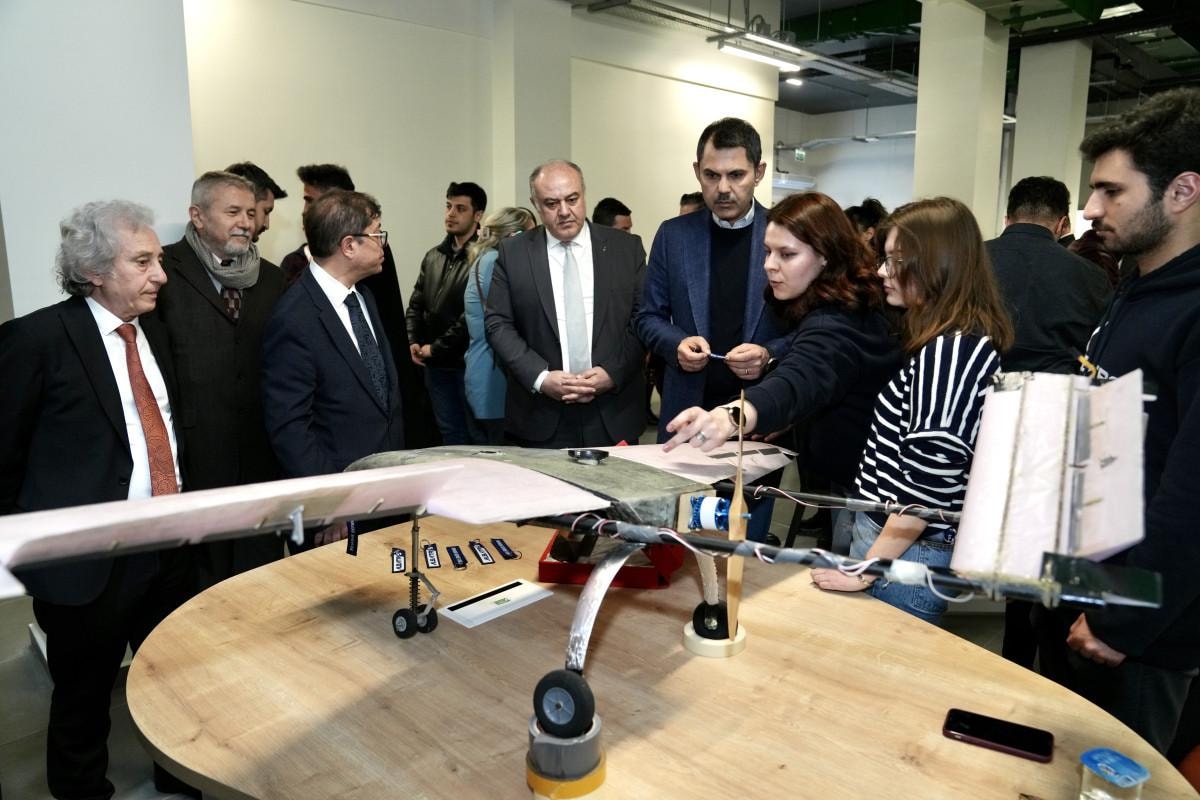 Burada üniversiteli öğrencilerle bir araya gelen Kurum, yapılan projeleri yakından inceledi.