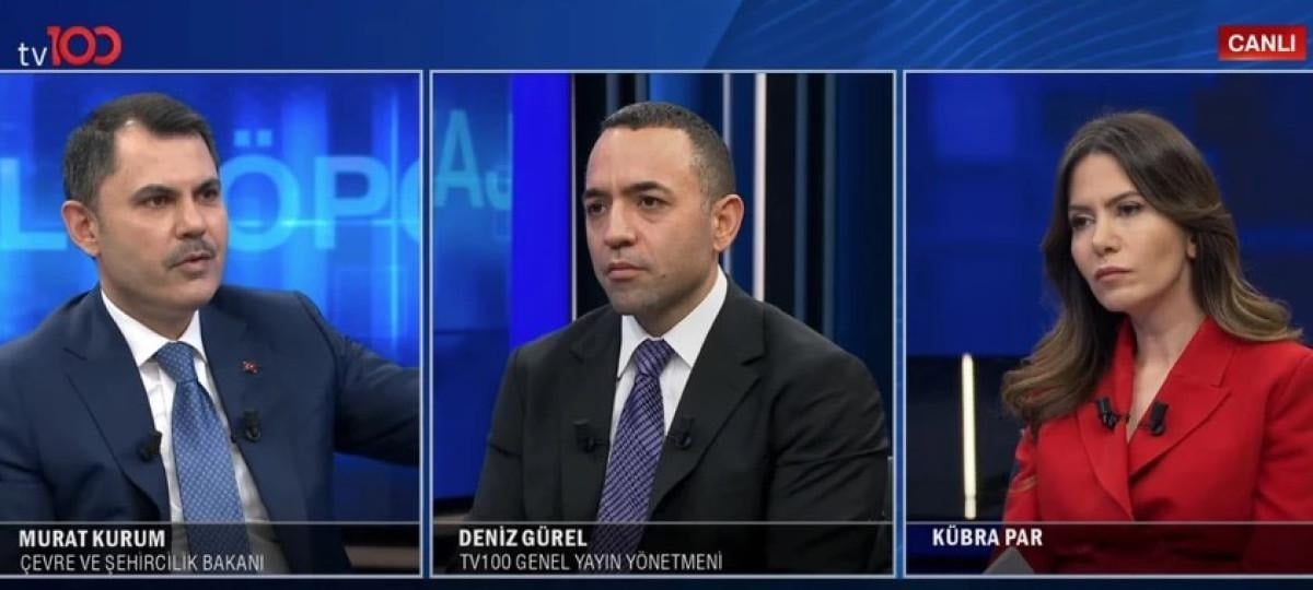 TV100 Genel Yayın Yönetmeni Deniz Gürel'in sorularını yanıtlayan Çevre, Şehircilik ve İklim Değişikliği Bakanı Murat Kurum, kamuoyunda yanlış bilinen birçok noktaya da açıklık getirdi. Özellikle CHP Genel Başkanı Özgür Özel’in Kanal İstanbul güzergâhındaki projelerle ilgili "rant alanı oluşturulduğu" iddialarına sert çıktı.