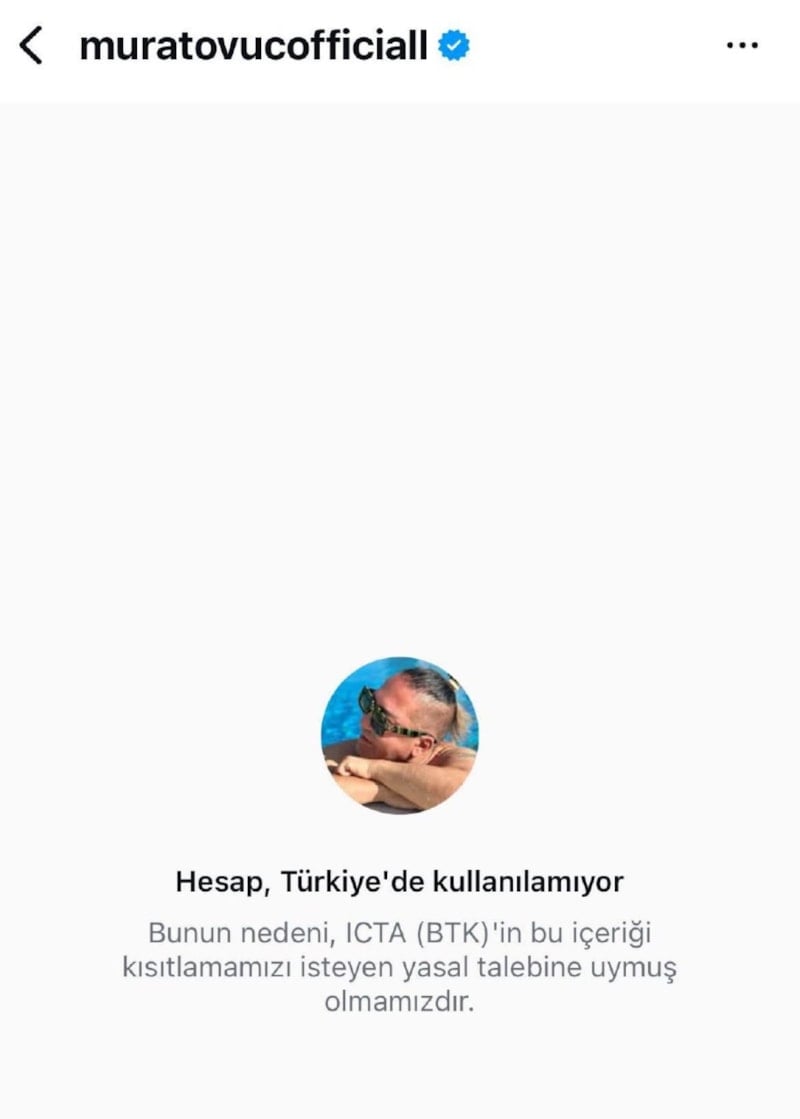 Övüç'ün 4 milyon takipçili hesabına girenler "Hesap, Türkiye'de kullanılamıyor" mesajıyla karşılaştı.