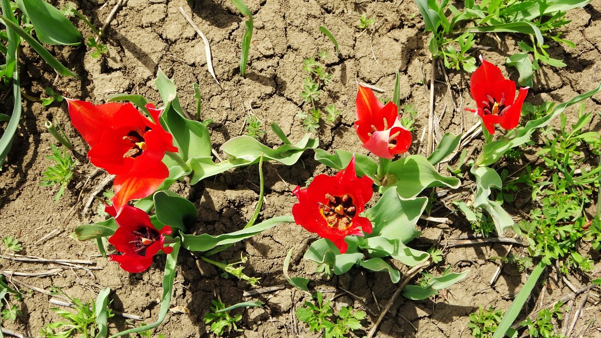 Muş’ta havaların ısınmasıla açmaya başlayan laleler, ovayı kırmızıya bürüdü. 15 ile 20 gün arasında ömrü bulunan laleler, fotoğraflanmak için ziyaretçi akınına uğruyor.