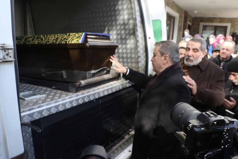 Mustafa Destici, evinin önünde taziyeleri kabul ederken, babasının araçtaki cenazesi başında dua etti.