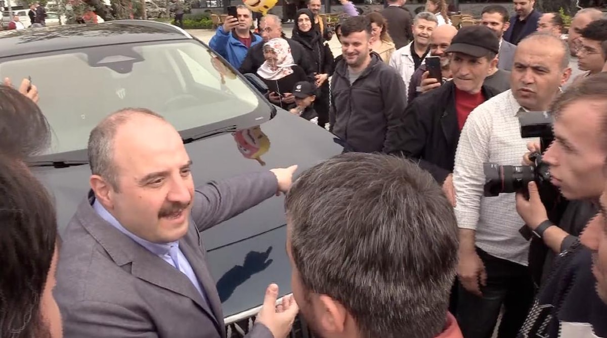 Yine büyük ilgi gören Togg'u görmeye gelenlerle sohbet eden Varank, fabrikada çalışan bir işçi ile karşılaştı.