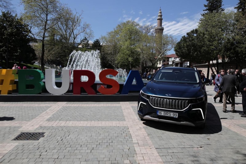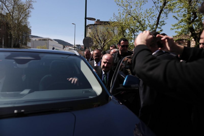 AK Parti Bursa Milletvekilleri tanıtım toplantısı için Sanayi ve Teknoloji Bakanı Mustafa Varank, 16 BRS 99 plakalı Togg ile Bursa'ya geldi.