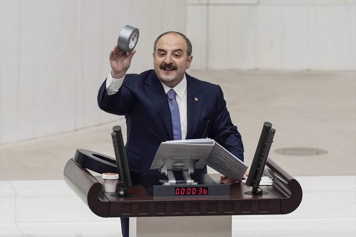 - Mustafa Varank, TBMM Genel Kurulu'nda yaptığı konuşmasında, elindeki uzay itki aracı yakıtı ve bantla AK Parti'nin yüksek teknoloji anlayışı ile CHP'nin anlayışı arasındaki farkı vurguladı.