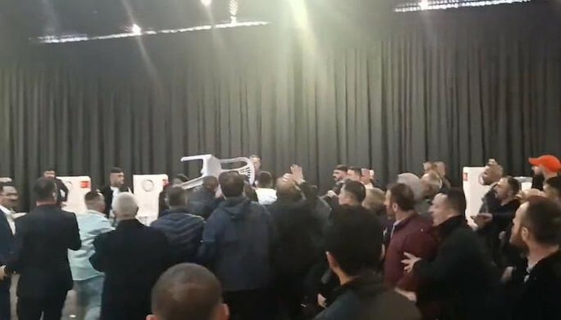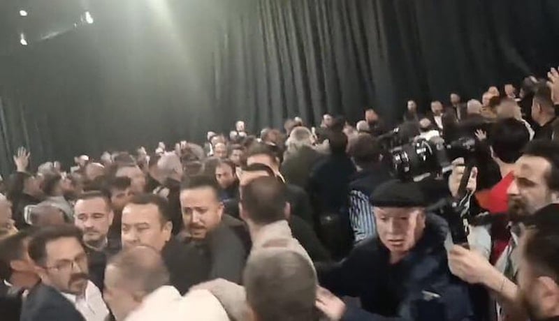 Sandalyelerin havada uçuştuğu kavgada partililer birbirlerine yumruk yumruğa saldırdı. Seçim İşleri Başkanı Şenol Sunat'ın ekibi ile milletvekili adayı Adnan Beker'in ekibi arasında çıkan kavga sonucu seçim iptal edildi.