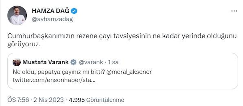 Bakan Varank'tan Akşener'e: Ne oldu papatya çayınız mı bitti