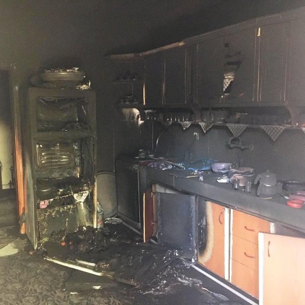 Evde olmadıkları sırada mutfakları yanan aile, eve döndüklerinde şaşkına döndü.