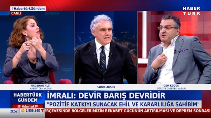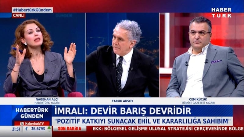 DEM Parti'nin İmralı ziyaretinin ardından hareketlenen yeni sürecin tartışıldığı canlı yayın programında tansiyon yükseldi. Cem Küçük ve Nagehan Alçı arasında "Sen kimsin beni koruyorsun" tartışmasında stüdyoda gerilim arttı.