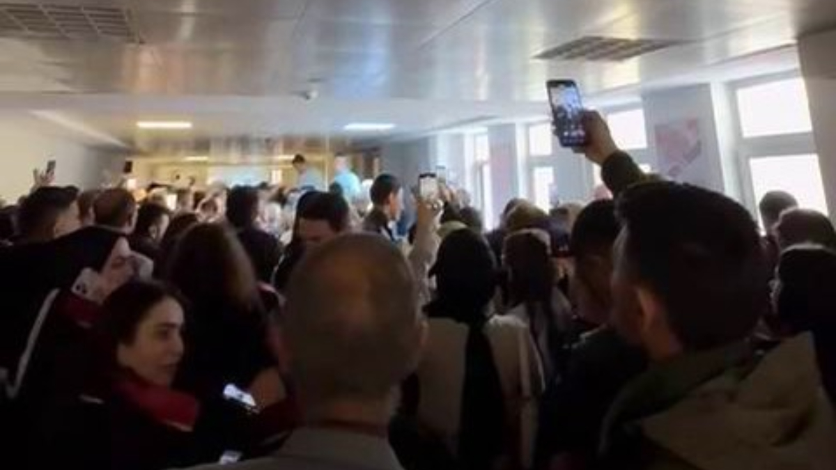 Salonun dolması nedeniyle içeri giremeyen avukatlar, "Avukatları içeri alın" sloganları attı.
