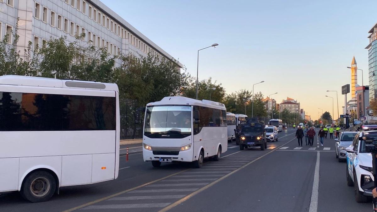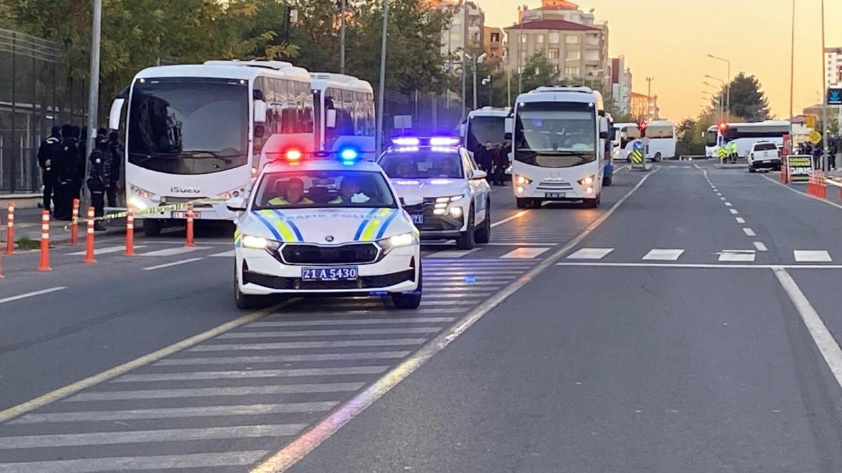 Güran cinayetinde ilk duruşma için tutuklu sanıklar, Diyarbakır Adliyesi'ne getirildi ve adliye etrafında geniş güvenlik önlemleri alındı.