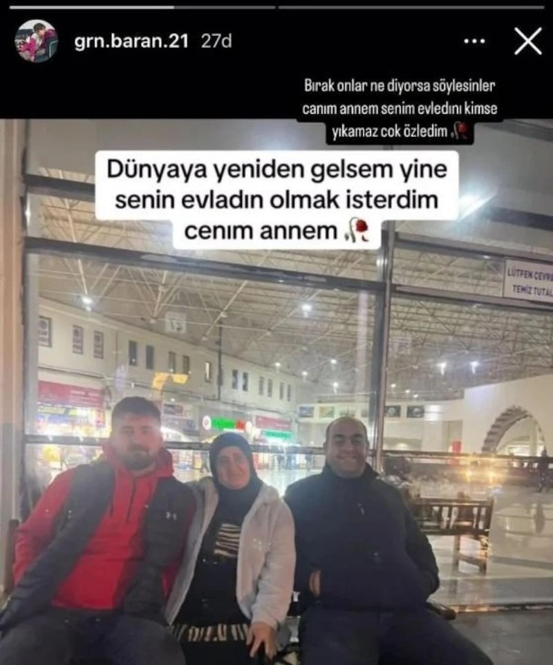 Baran Güran, tutuklu annesi Yüksel Güran, kardeşi Enes Güran ve Narin'in yer aldığı 3 ayrı paylaşımı 45 dakika sonra sildi.