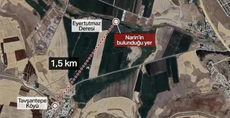 19 gündür kayıp olan 8 yaşındaki Narin Güran, köyün yakınlarındaki derede çuval içerisinde ölü halde bulunmuştu.