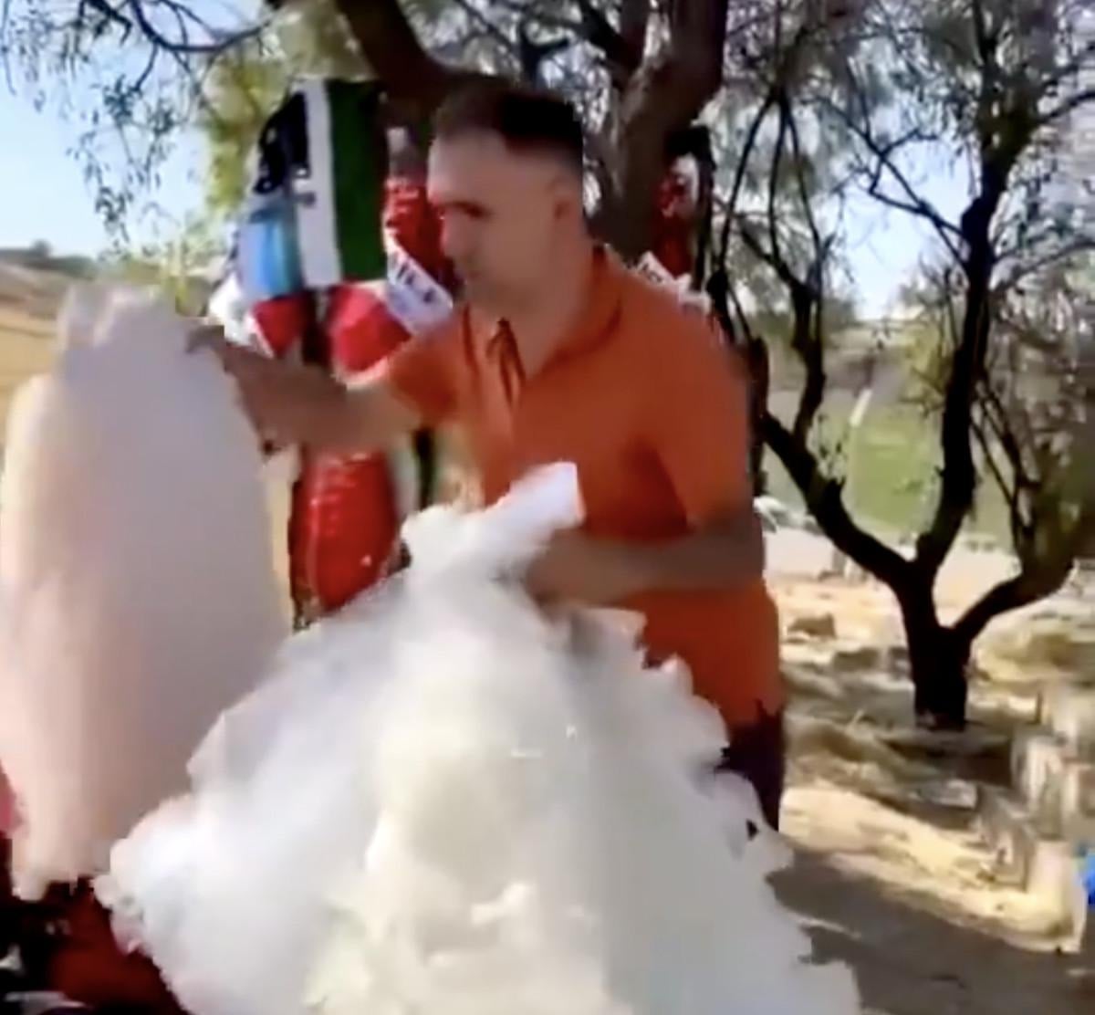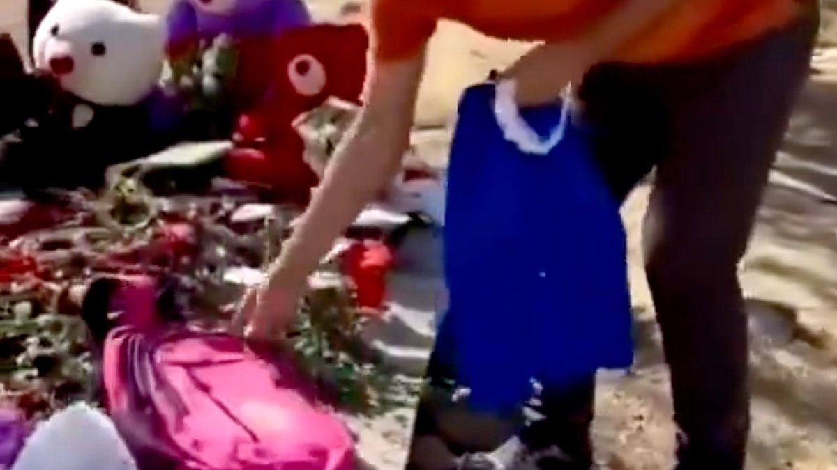 Ancak bu gelinlikten rahatsız olan bir vatandaş, Narin'in mezarına serilen bu gelinlikleri kaldırıp yerine okul çantası ve okul önlüğü koydu.