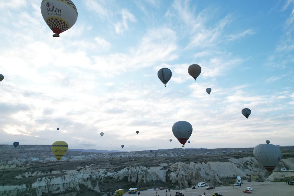 Balonlarda yer bulamayan turistler ise Kapadokya vadilerini doldurarak bu görsel şöleni izledi.