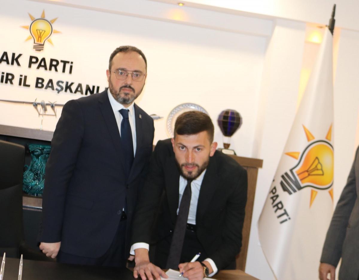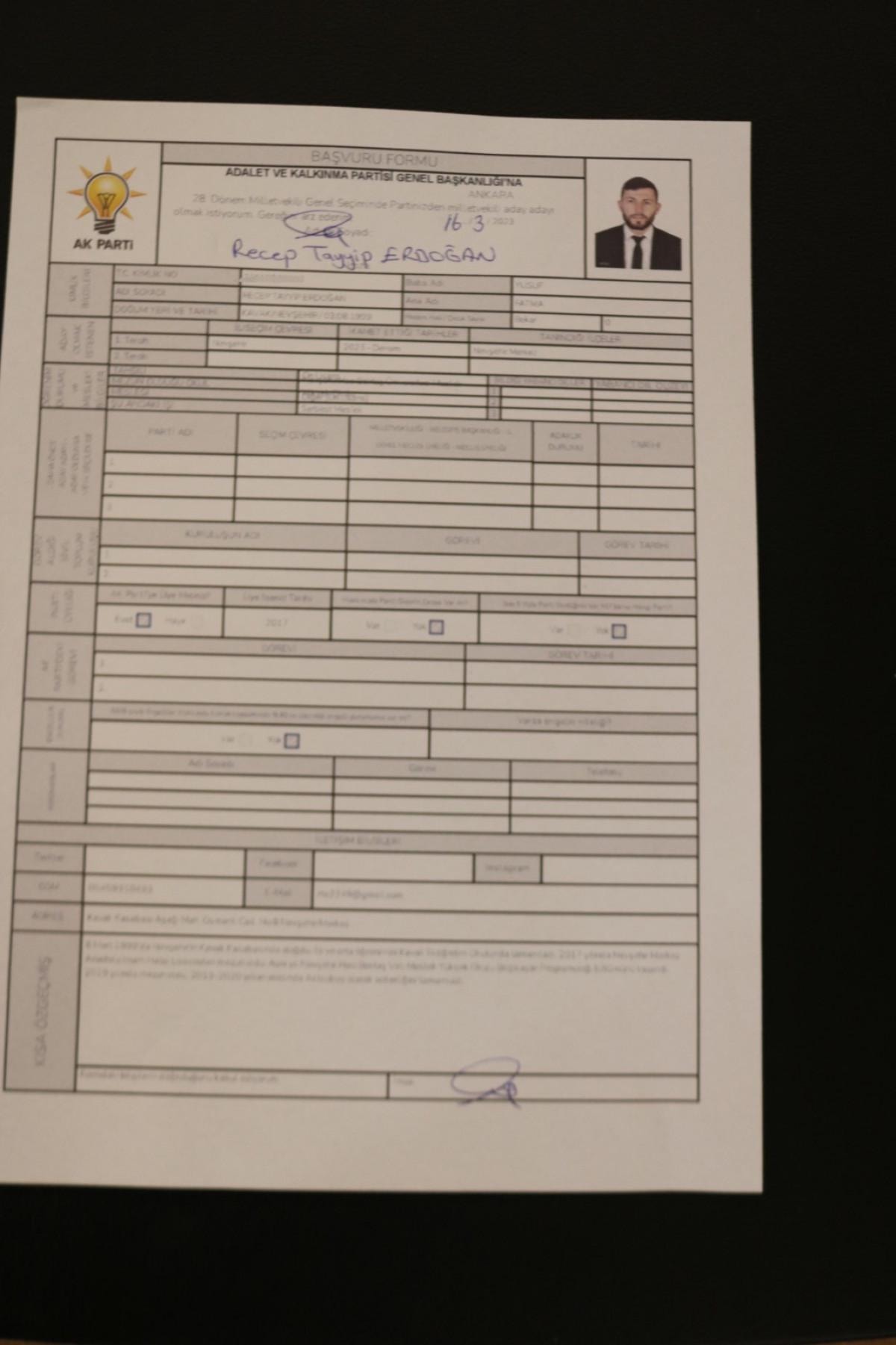 24 yaşındaki genç gerekli evrakı doldurup parti binasında AK Parti İl Başkanı Ali Kemıkkıran'a teslim etti.