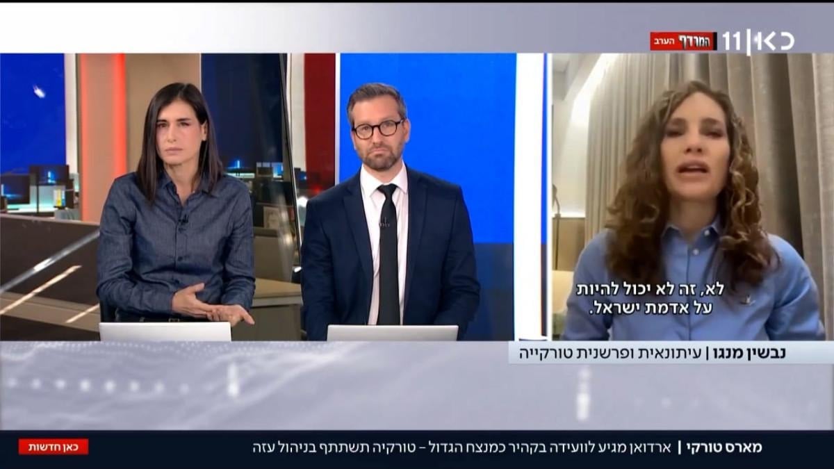 - Nevşin Mengü, İsrail televizyonunda Türkiye-İsrail ilişkilerinin geleceği hakkında konuştu.