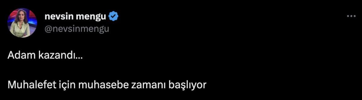 "Adam kazandı" diyen Mengü, muhalefete de muhasebe çağrısı yaptı.