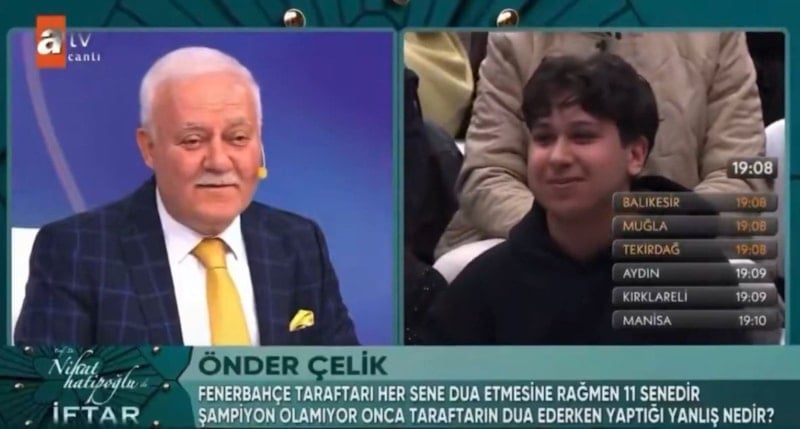 Ramazan aylarının ekran klasiği haline gelen programıyla izleyici karşısına çıkan Prof. Dr. Nihat Hatipoğlu, bu kez alışılmışın dışında bir soruyla gündeme geldi. Bir izleyici Nihat Hoca'ya 11 yıldır dua ettikleri halde neden şampiyon olamadıklarını sordu.