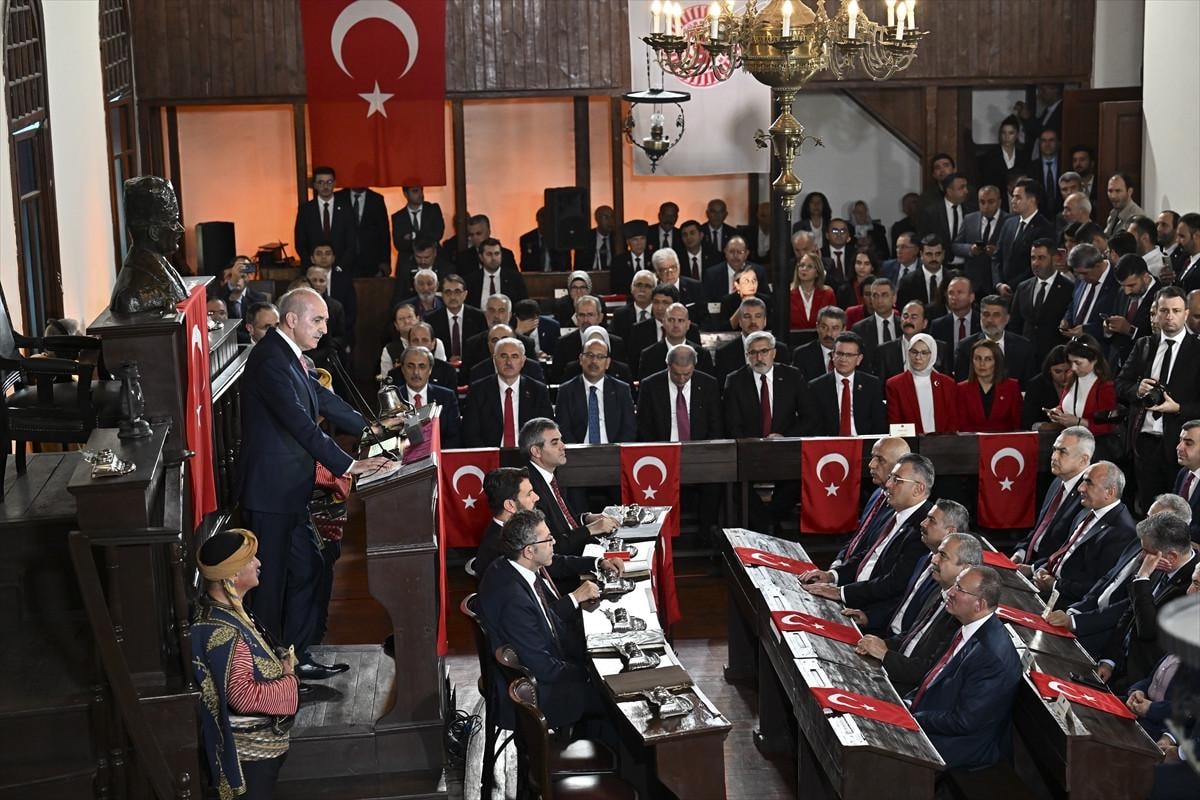 Gazi Mustafa Kemal Atatürk'ü, Milli Mücadele'nin tüm kahramanlarını ve Birinci Meclis'in üyelerini yad eden Kurtulmuş, 100 yıl sonra aynı ruh ve heyecanla bir arada olduklarının altını çizdi.
