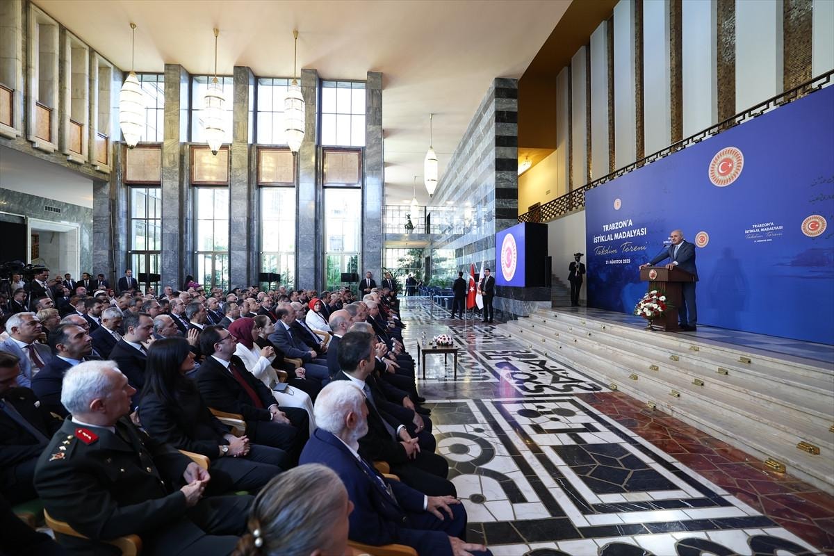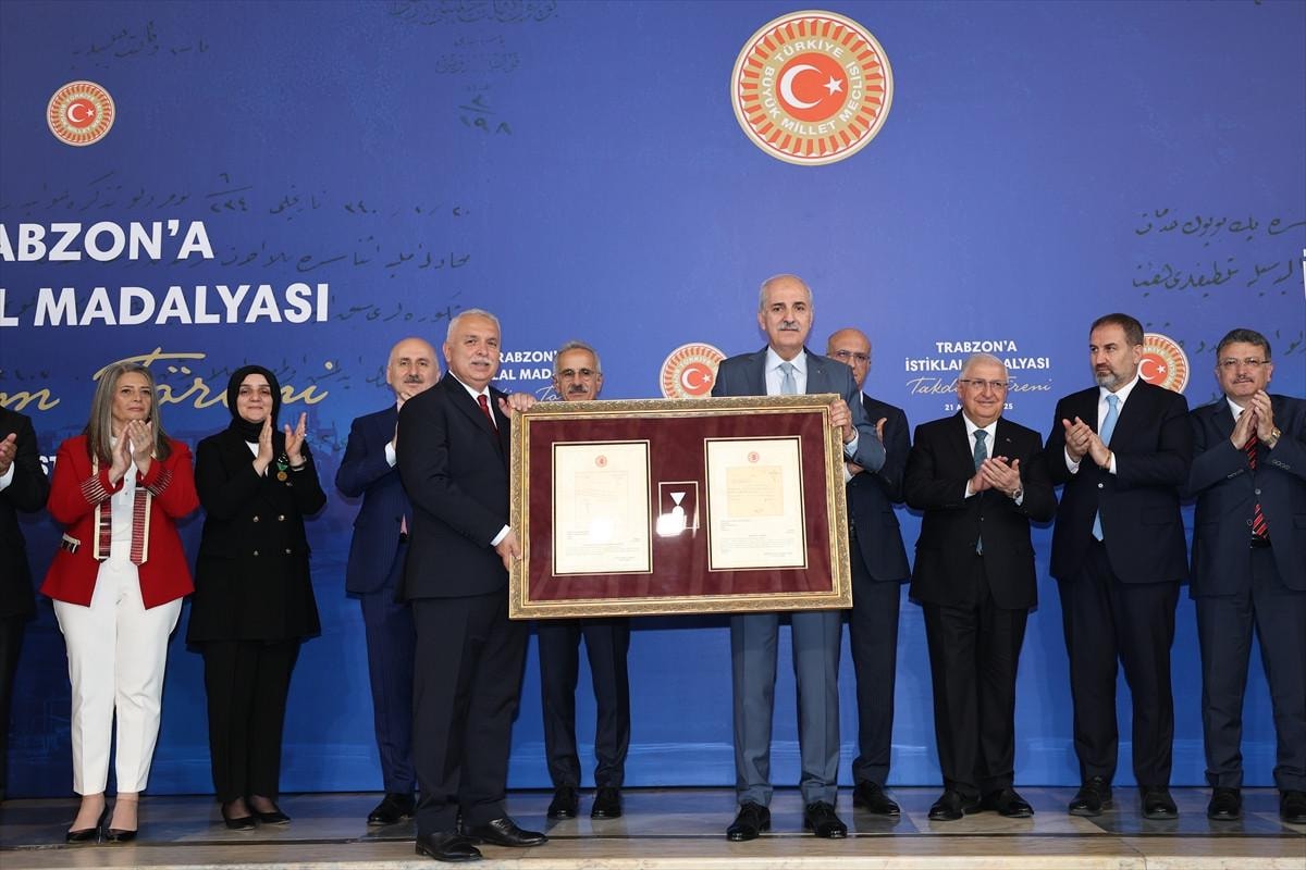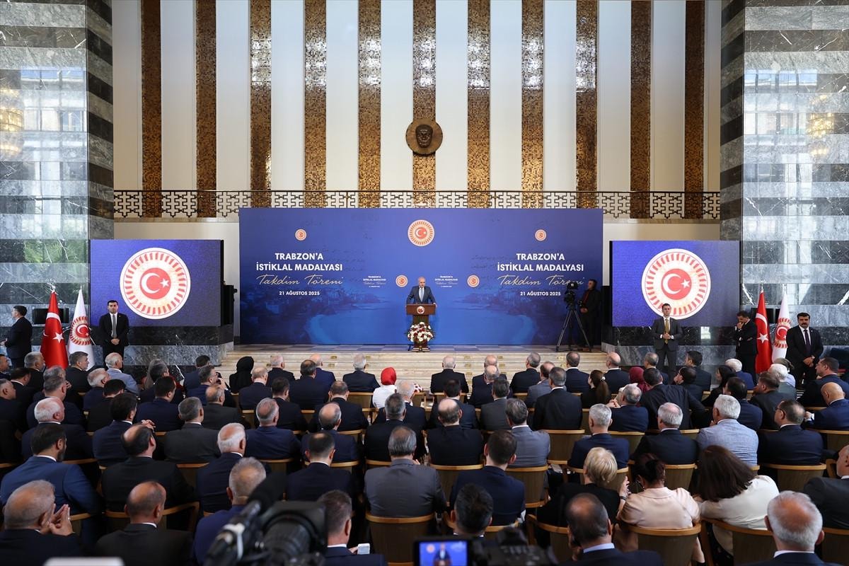 TBMM Başkanı Numan Kurtulmuş, TBMM Şeref Holü'nde düzenlenen Trabzon'a İstiklal Madalyası Takdim Töreni'ne katıldı.