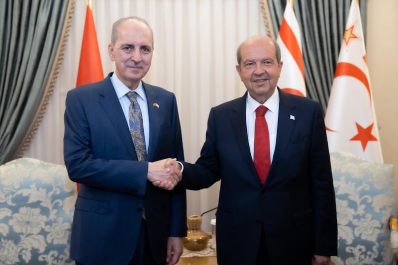 TBMM Başkanı seçildikten sonra ilk yurt dışı ziyareti kapsamında 'yavru vatan'a gelen Kurtulmuş, burada KKTC Cumhurbaşkanı Ersin Tatar tarafından kabul edildi.