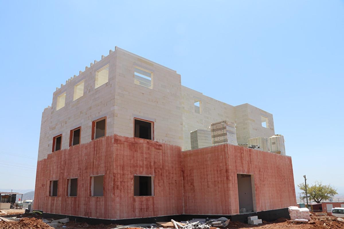 İlçedeki Alparslan Türkeş Konteyner Kent'te inşası süren köy evi ve 3 katlı binanın kaba inşaatı bitti.