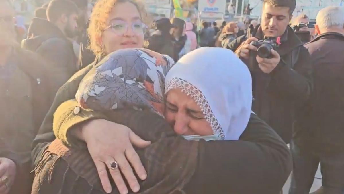 Meydanlarda kurulan dev ekranlardan çağrıyı dinleyen Diyarbakırlılar, PKK'nın lağvedilme çağrısını birbirlerine sarılarak kutladılar.