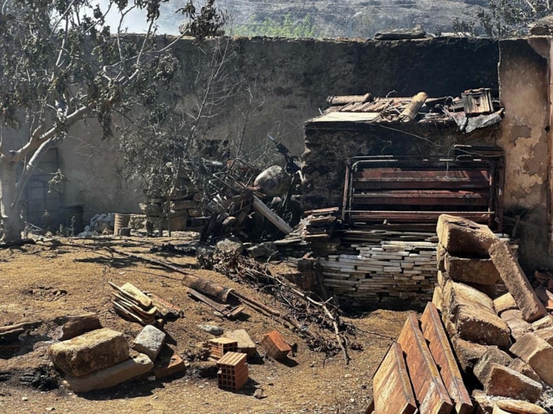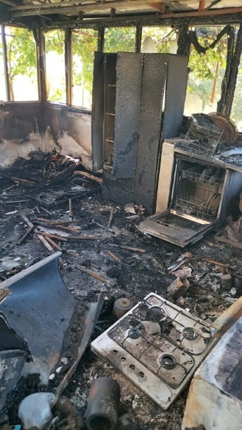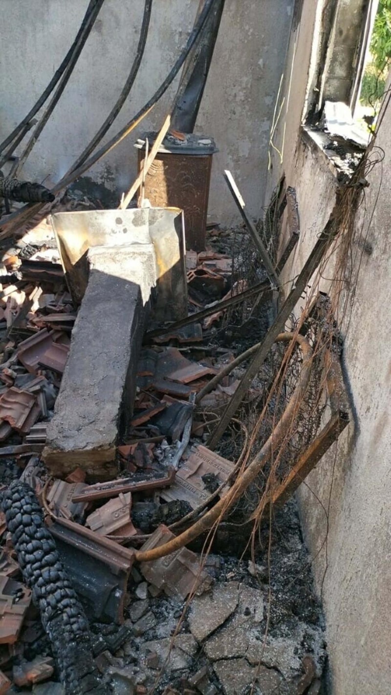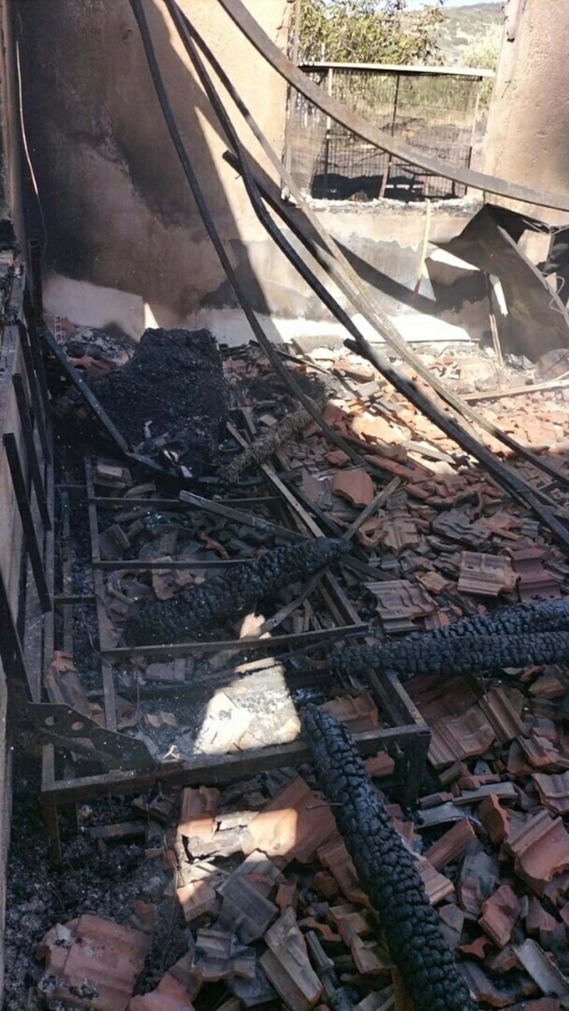 İzmir'in Ödemiş ilçesinde çıkan orman yangınında alevler, kırsal Karadoğan Mahallesi'ne sıçradı. Yangında zarar gören evler görüntülendi.