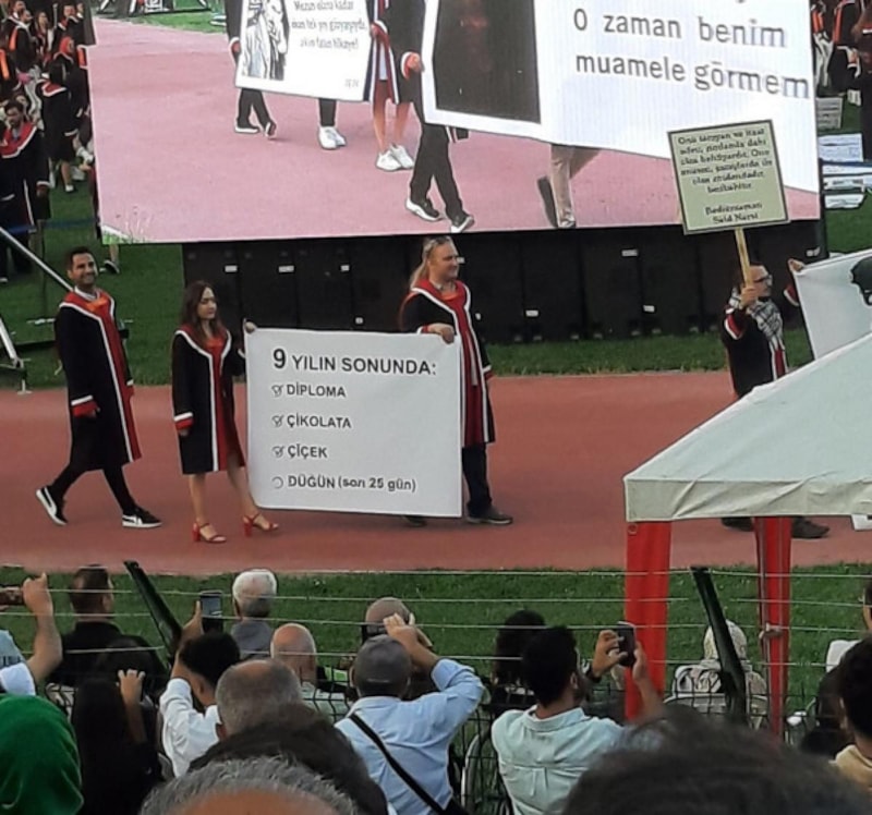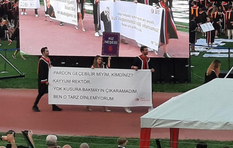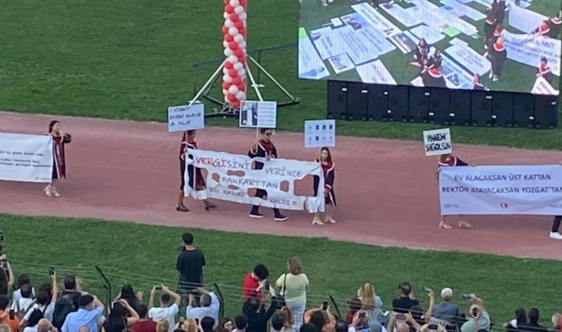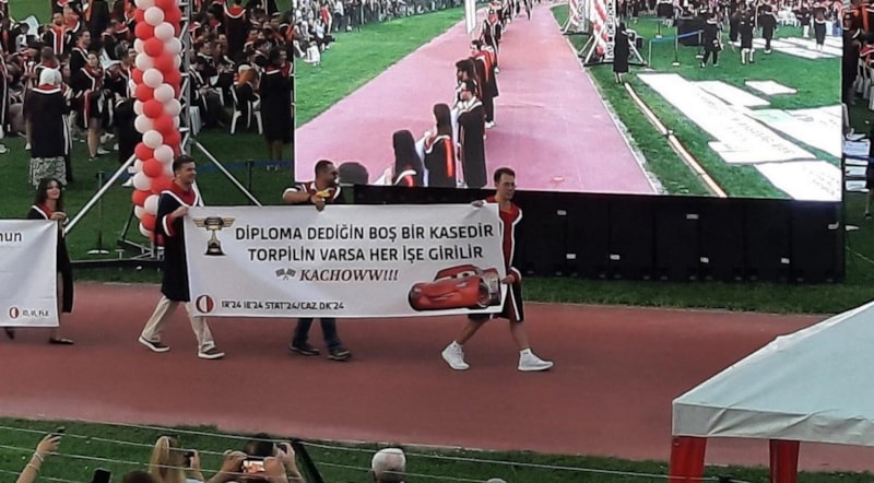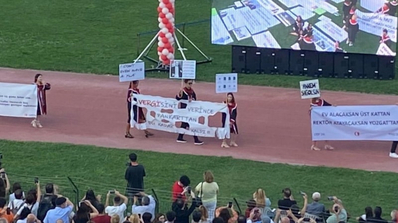 Her mezuniyette taşıdıkları tepki yüklü pankartlar, bu kez de dikkat çekici mesajlarıyla sosyal medyada yankı buldu.