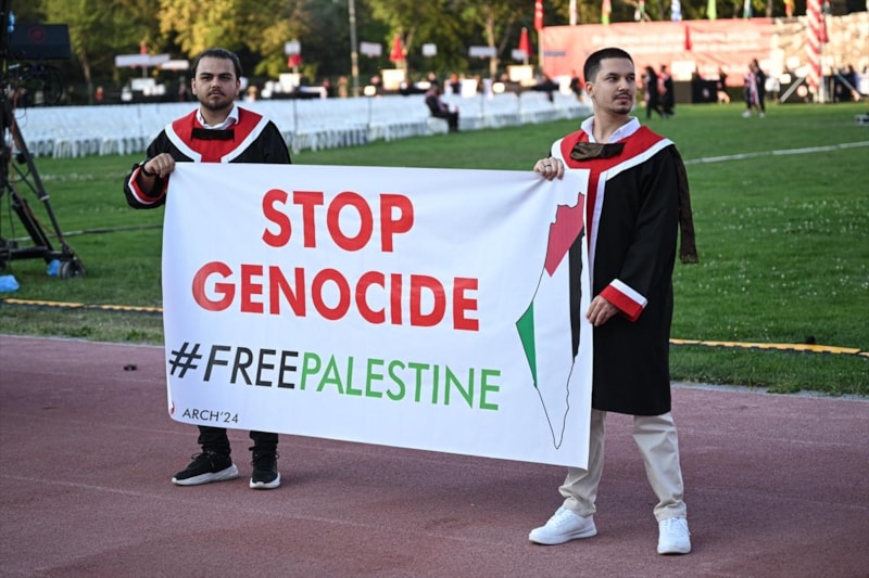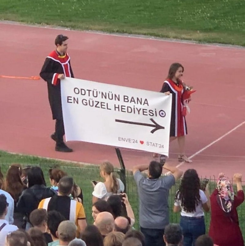 Orta Doğu Teknik Üniversitesi (ODTÜ) öğrencileri, her yıl olduğu gibi bu yıl da mezuniyet töreninde açtıkları pankartlarla gündeme oturdu.
