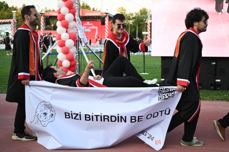 ODTÜ öğrencilerinin mezuniyet töreninde açtığı pankartlar, her yıl olduğu gibi bu yıl da siyasi ve esprili mesajlarla doluydu.